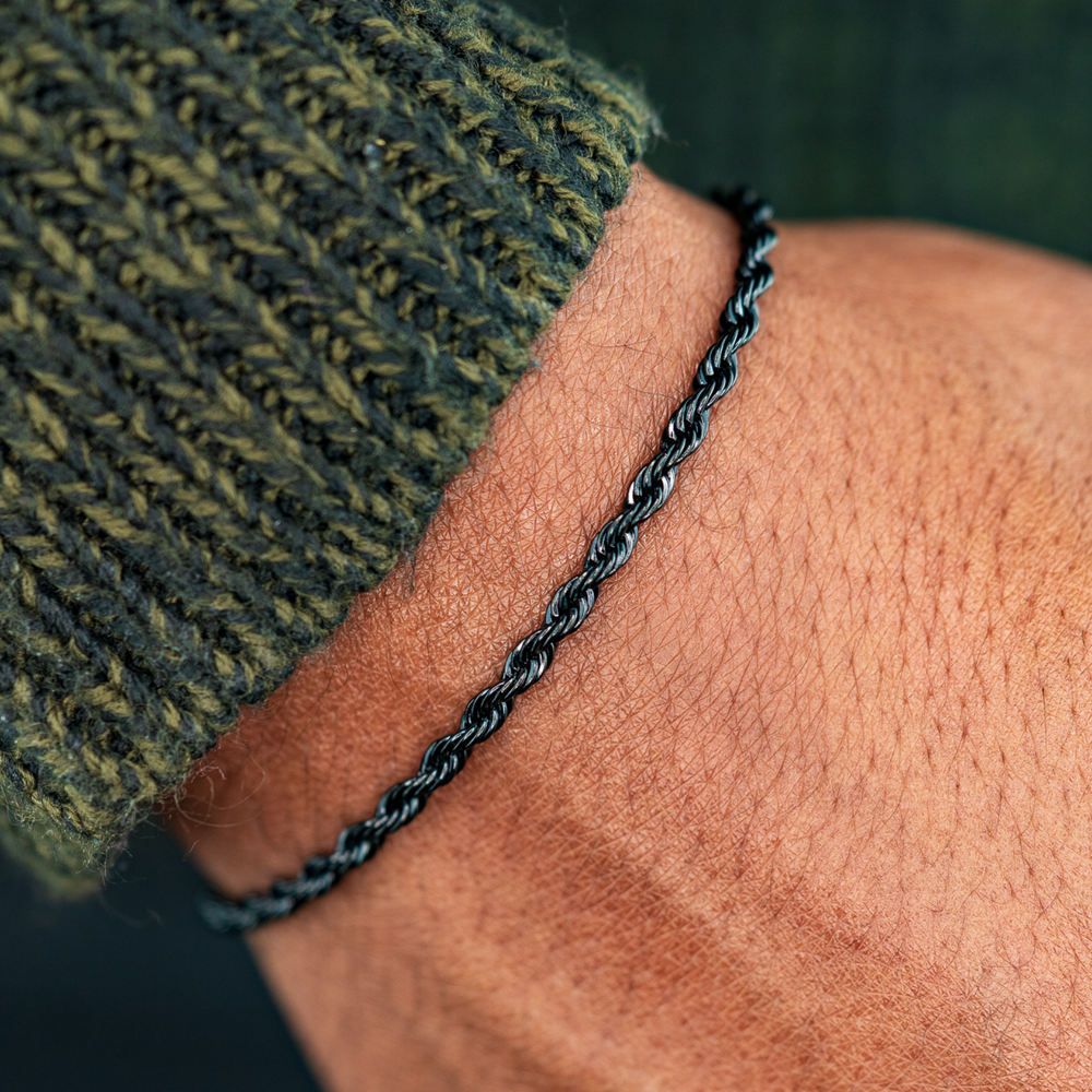 Our 3mm Rope Bracelet in gold, silver, and black embodies strength and classic style. Designed for the man who values both durability and a clean, sharp look, this bracelet is the perfect accessory for any occasion. Complete your look by pairing it with our Rope Necklace for a bold, coordinated statement.