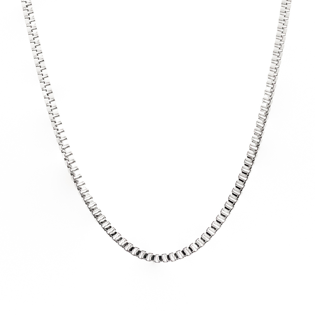 Made to shine. Built to last. The 3mm Square Box Chain delivers clean, confident style with sharp, squared links crafted from durable stainless steel for everyday wear. Available in polished silver, bold gold, or sleek black, this chain is designed to hold its shine—no tarnish, no fuss, just solid style.