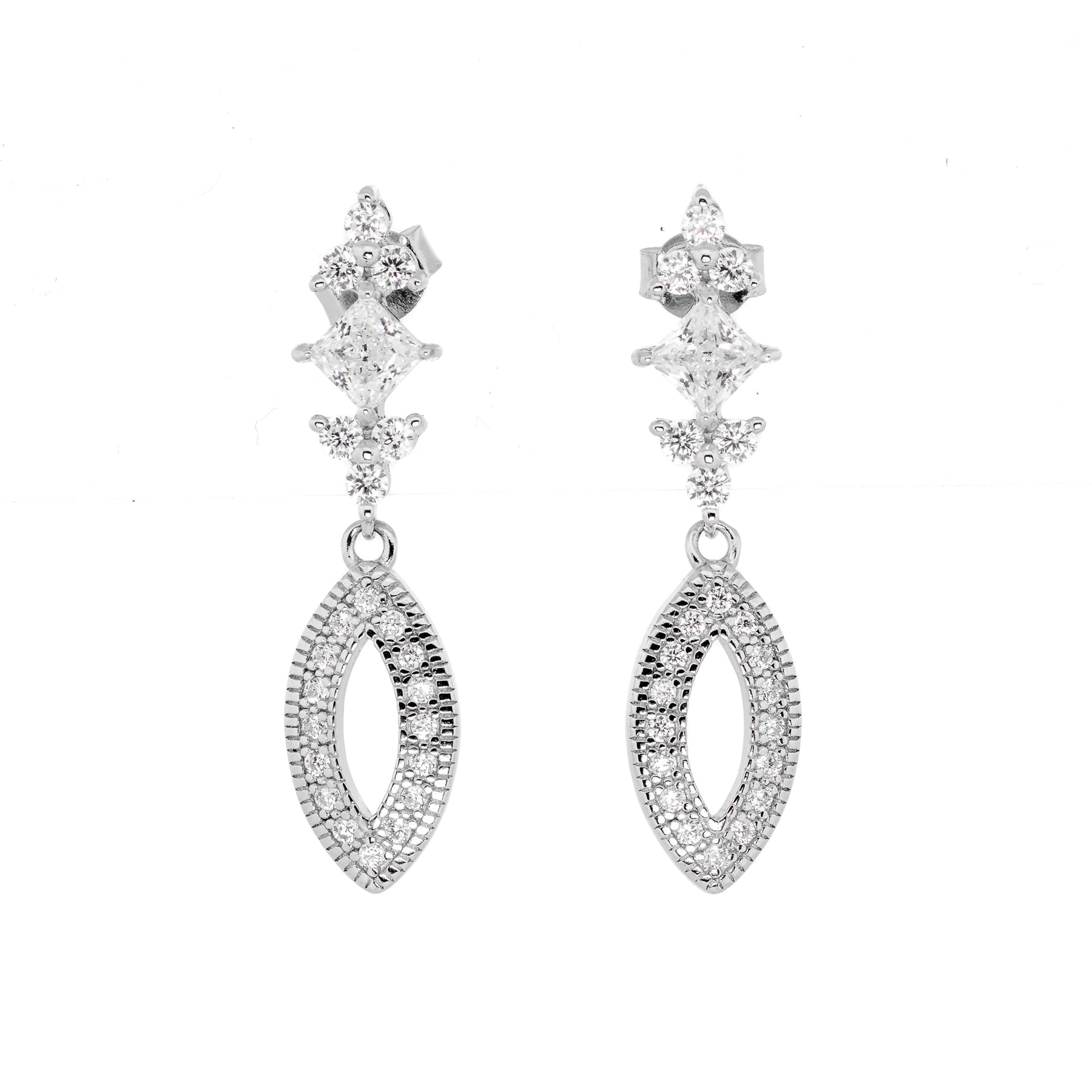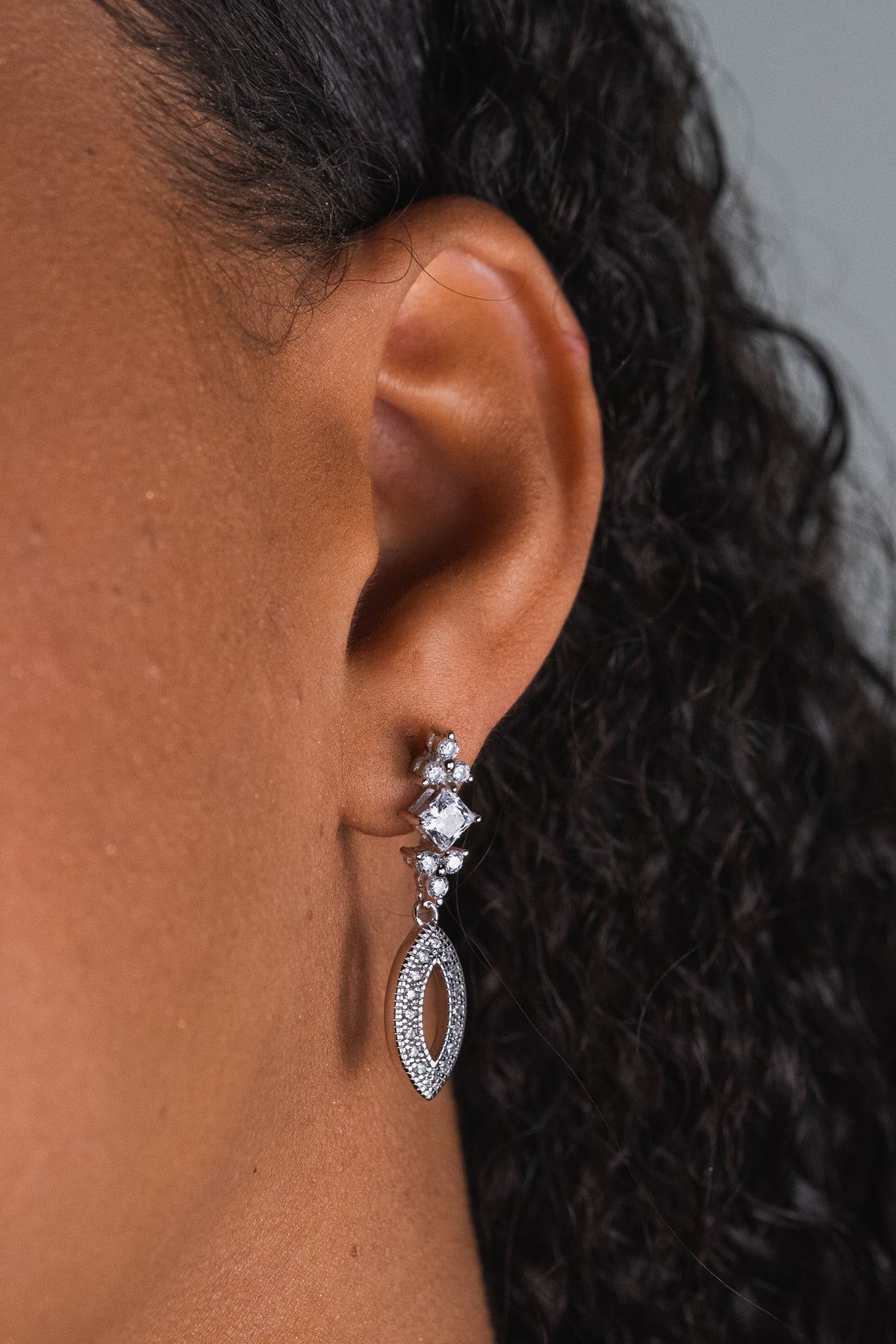 Soft movement meets radiant sparkle in Moon Tide — a graceful drop earring inspired by the gentle pull of ocean currents under moonlight. A layered cascade of brilliant stones leads into an elegant marquise-shaped halo, creating fluid motion and eye-catching shimmer with every step you take.