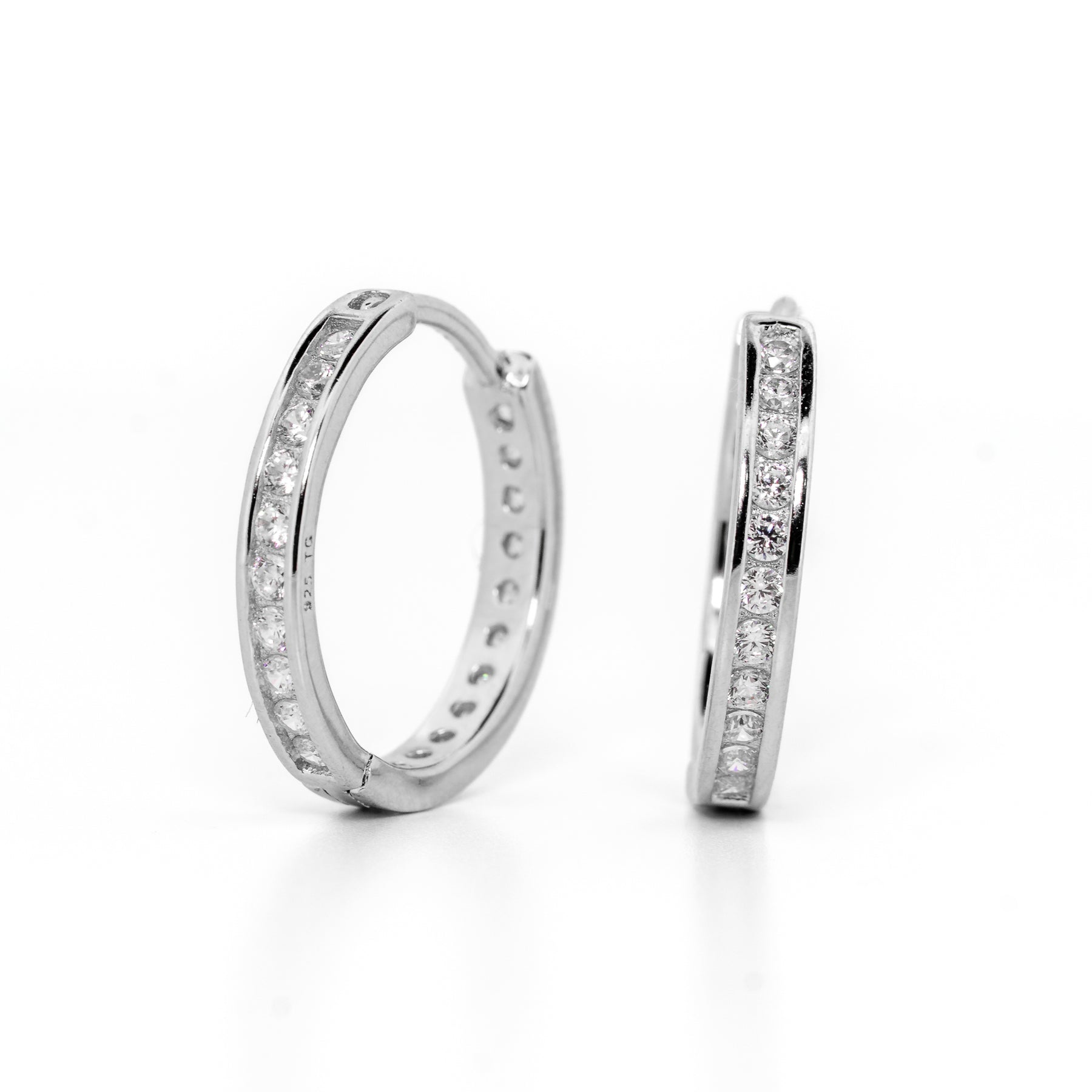 Crafted in luminous rhodium-plated sterling silver and set with a continuous stream of precision-cut stones, Roundabout delivers a clean, high-shine glow that feels polished from every angle. It catches the light with quiet confidence, making it perfect for both everyday refinement and elevated evenings.